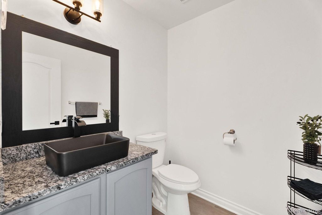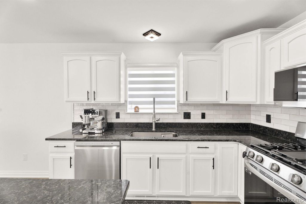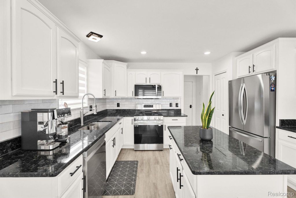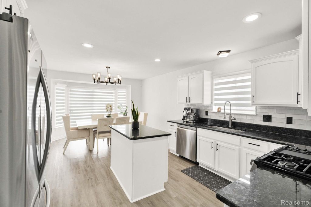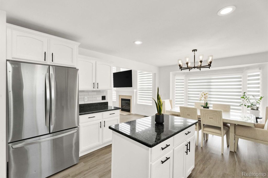 The spacious, beautiful kitchen features granite countertops, stainless steel appliances, and a breakfast nook within the open layout. First-floor laundry adds everyday convenience.